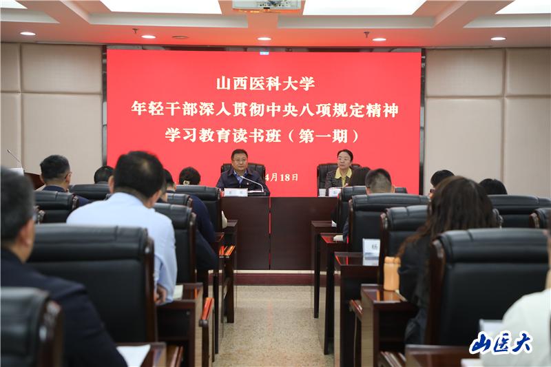 4月18日,学校在中都校区第五会议室举办年轻干部深入贯彻中央八项规定精神学习教育读书班(第一期),学校55名年轻干部参加了本期读书班。校党委书记王军出席开班式并讲话,校党委副书记彭月兰主持开班式。